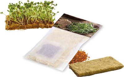 Inhalt: Wachstumsvlies aus Hanffasern, Samen: Kresse