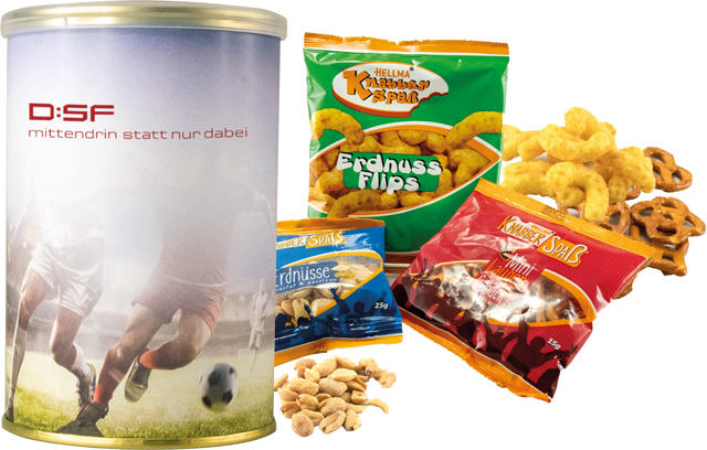 Beschreibung: Ein Fußballspiel kann aufregend sein und auch mal länger dauern. Da kommen die kleinen Snacks gerade richtig. Die Banderole im Standardmotiv bietet viel Platz für Ihre Werbeanbringung. Ebenfalls ab 250 Stück ist eine individuelle Gestaltung möglich.