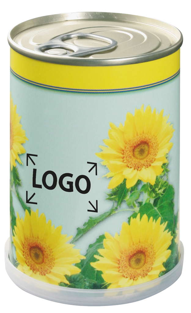 Beschreibung: Das Getränkedosenformat mit Wachstum. Aufreißdeckel öffnen. Den Deckel als Untersetzer einsetzen und über den Boden stülpen. Die Standardgrafik bietet Platz für einen Aufdruck im Tampondruckverfahren. Eine komplett eigene Gestaltung der Dose und Samenwahl bereits ab 5.000 Stück.