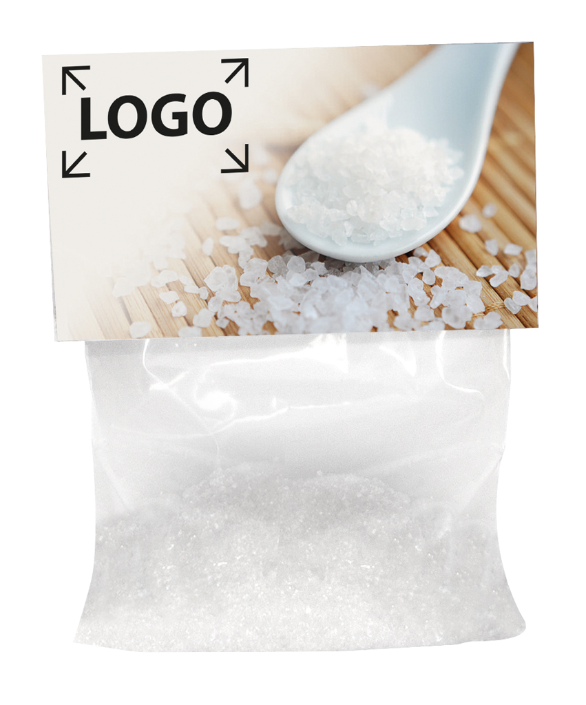 Beschreibung: Das weiße Gold der Erde, so wird das hochwertige Meersalz genannt. Auch andere Gewürze sind wählbar. Ihr Werbeeindruck im Standardmotiv ist auf dem Header möglich oder Ihre eigene Gestaltung ab 250 Stück.