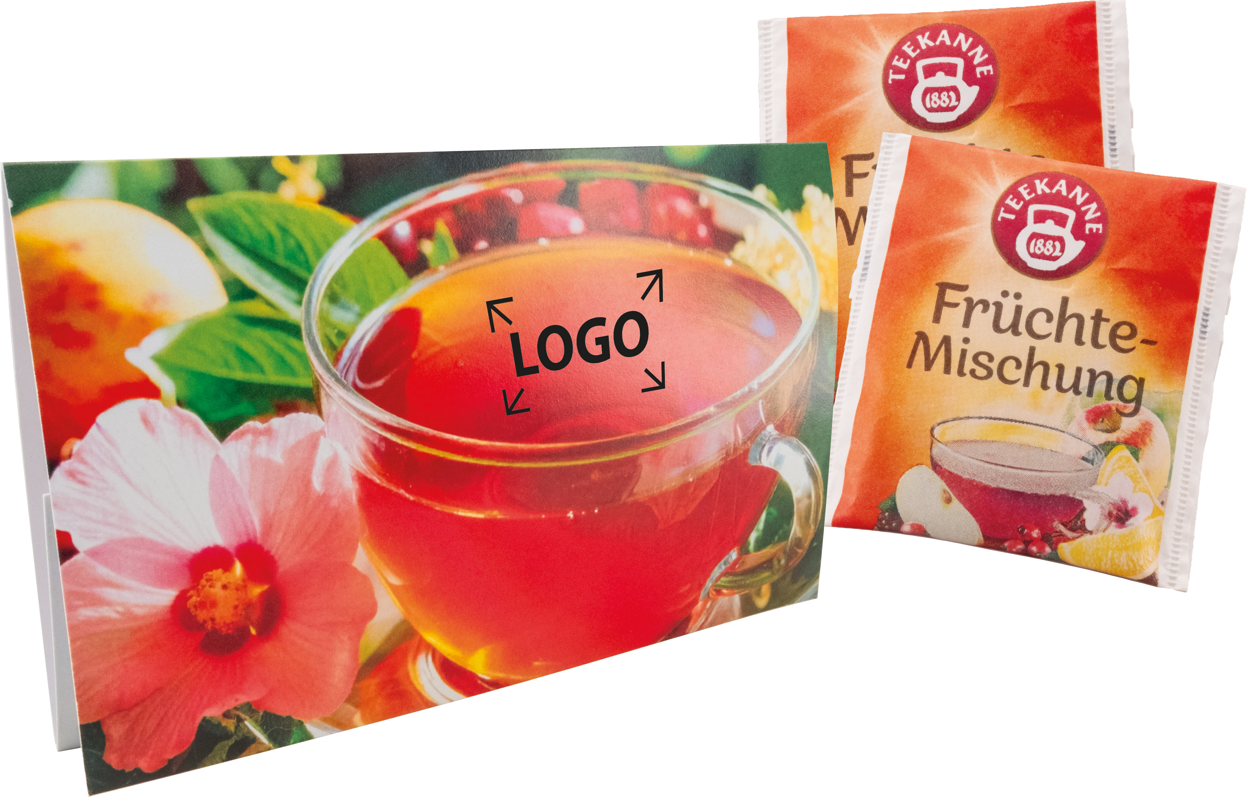 Beschreibung: Das Klappkärtchen beinhaltet zwei praktische Teebeutel mit Früchtemischung. Ob heiße Tasse für entspannende Momente oder fruchtige Erfrischung als Eistee: Mit intensivem Geschmack, leuchtender Farbe und natürlicher Süße – ganz ohne Zusatzstoffe. Eine Werbeanbringung auf dem Standardmotiv oder die individuelle Gestaltung der Karte ist bereits ab 250 Stück möglich.