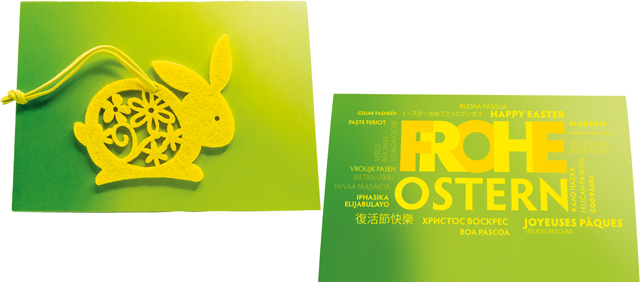Beschreibung: Verschicken Sie auch an Ostern sympathische Grüße. Das gelingt in jedem Fall mit unserem Filz-Hasen. Ihr Werbeeindruck oder eine individuelle Gestaltung der Karte ist ab 250 Stück möglich.