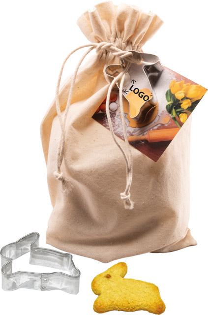 Beschreibung: Leckere Plätzchen für die Ostertage. Mit unserer Backmischung und der Ausstechform gelingen Kekse garantiert. Ein Werbeeindruck in das Standardmotiv oder eine eigene Gestaltung der Karte ist bereits ab 100 Stück möglich.