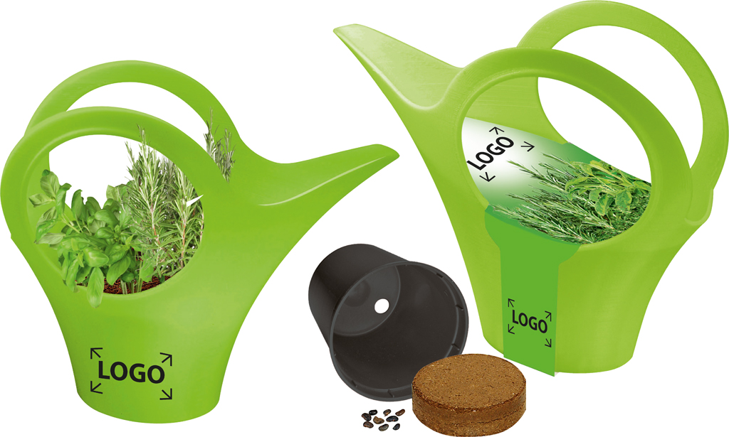 Beschreibung: Die Design-Gießkanne aus dem Hause Koziol. Als Anzuchtbehältnis mit Töpfchen, Erdtablette und Samen. Nach dem Umtopfen der gewachsenen Pflanze nutzen Sie die Funktion als Design-Gießkanne oder als Blumenvase, sowie als Sammelbehältnis für Utensilien. Standardfarben wählbar in weiß, grün, gelb oder orange. Wunschfarben auf Anfrage. Die umlaufende Banderole dient als Werbeträger. Platz im Standardmotiv für Ihren Eindruck oder eine eigene Gestaltung ab 250 Stück.