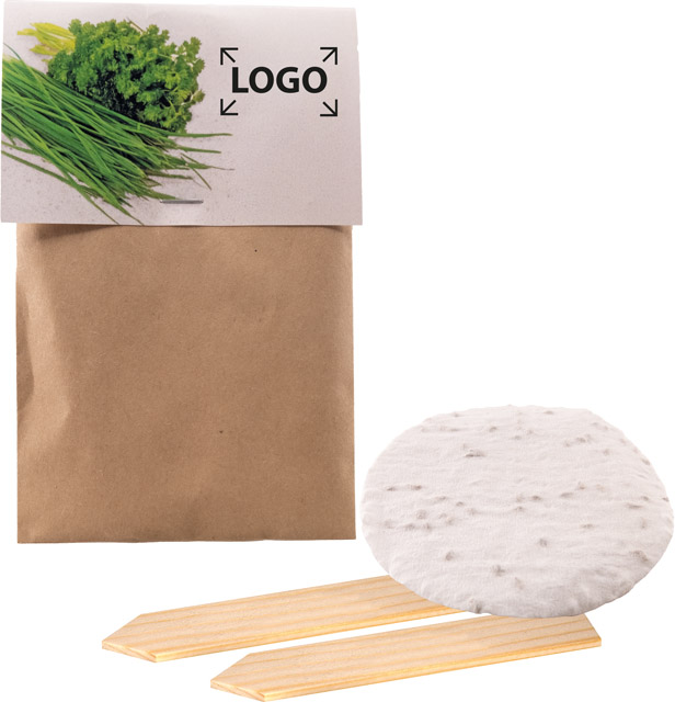 Beschreibung: Mit unseren Samenpapieren können Ihre Kunden ein eigenes kleines Kräuterbeet anlegen, sogar im Balkonkasten oder auf der Fensterbank. Frisch geerntet sind die Kräuter gesund und geschmacklich unschlagbar. Der Header bietet Platz für Ihre Werbebotschaft oder, ebenfalls ab 250 Stück, für eine individuelle Gestaltung.