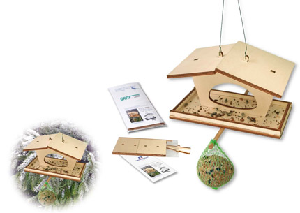 Inhalt: Steckteile aus Holz, Draht, Bastelanleitung (ohne Meisenknödel)