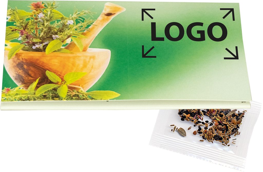 Beschreibung: Die ideale Beilage für Ihre Werbebotschaft. Verschiedene Standardmotive und Samensorten stehen zur Auswahl. Mit dieser Karte haben Sie, mit Ihrer eigenen Gestaltung der Vorder- und Rückseite (außen), einen preiswerten Mailingbegleiter. Die Samentüte wird innen eingelegt und Sie können die Sorte der Samen, passend zu Ihrer Werbeaussage und Jahreszeit, selbst wählen. Der Druck erfolgt in das Standardmotiv oder eine eigene Gestaltung, jeweils ab 250 Stück. Samen: Kräutermischung