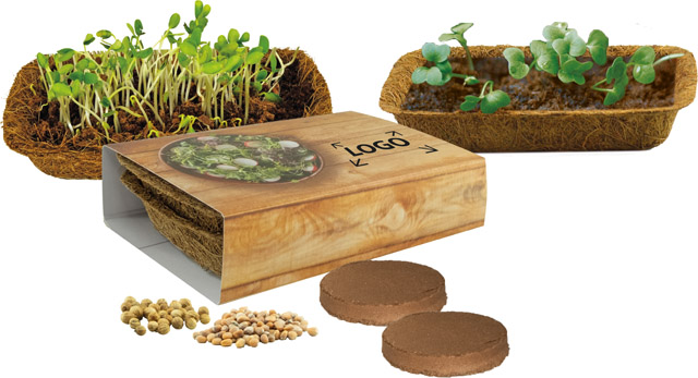 Beschreibung: Unsere grünen Vitaminbomben sind lecker und schön anzusehen. Die gesunden Keimpflanzen verfeinern Salate oder Smoothies. Ihre grüne Werbebotschaft findet Platz auf dem Standardmotiv. Ab 250 Stück ist der Schuber ebenfalls komplett personalisierbar.