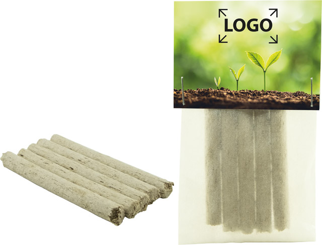 Beschreibung: Die fünf Düngestäbchen unterstützen ein gesundes Wachstum. Auch Geschäftsbeziehungen oder Mitarbeitermotivation können so symbolisch gefördert werden. Der Header bietet Platz für Ihre Werbebotschaft oder, ebenfalls ab 250 Stück, für eine individuelle Kundengestaltung.