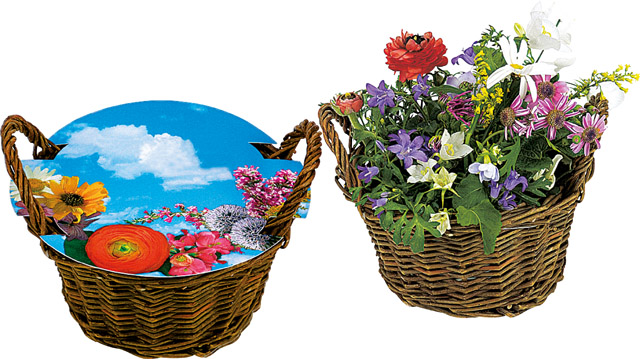 Beschreibung: Alles für das direkte Wachstum aus dem Korb. Im Natur-Weidenkörbchen mit Henkel sind Erde, Pflanzanleitung und Samen eingelegt. Werbeaufdruck auf dem Standardmotiv, sowie eine eigene Gestaltung der Abdeckung ist möglich ab 250 Stück.