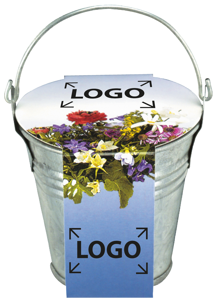 Beschreibung: Das kleine Zinkeimerchen enthält ein Tontöpfchen, Erdtablette und Blumenmischung-Samen. Ein handliches Giveaway für Ihre wachsende Werbebotschaft. Ihre eigene Gestaltung der Banderole bereits ab 250 Stück.
