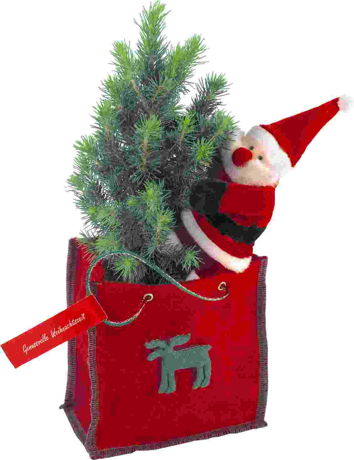 Inhalt: Bäumchen 20-30 cm, magnetischer Weihnachtsmann, Filztasche