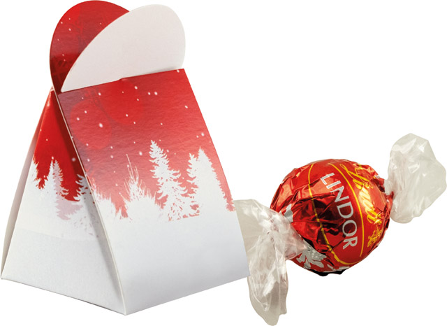 Beschreibung: Ein kleines Geschenkpäckchen für Ihre Kunden. Überreichen Sie diese Überraschung und Ihre Kunden werden die köstliche Schoko-Kugel von Lindt genießen. Ihr Werbeeindruck oder eine individuelle Gestaltung des Päckchens ist ab 250 Stück möglich.