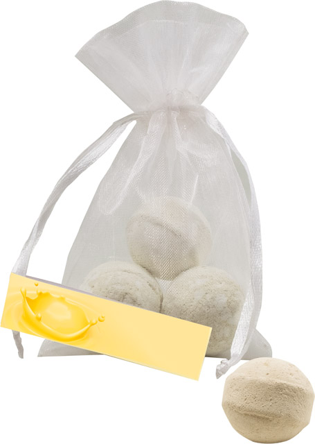 Beschreibung: Überraschen Sie Ihre Kunden mit diesen kleinen Badebomben. Der Vanilleduft verspricht ein besonderes Wellnesserlebnis. Das Fähnchen kann mit Ihrem Werbeeindruck versehen werden oder, ebenfalls ab 250 Stück, individuell gestaltet werden.